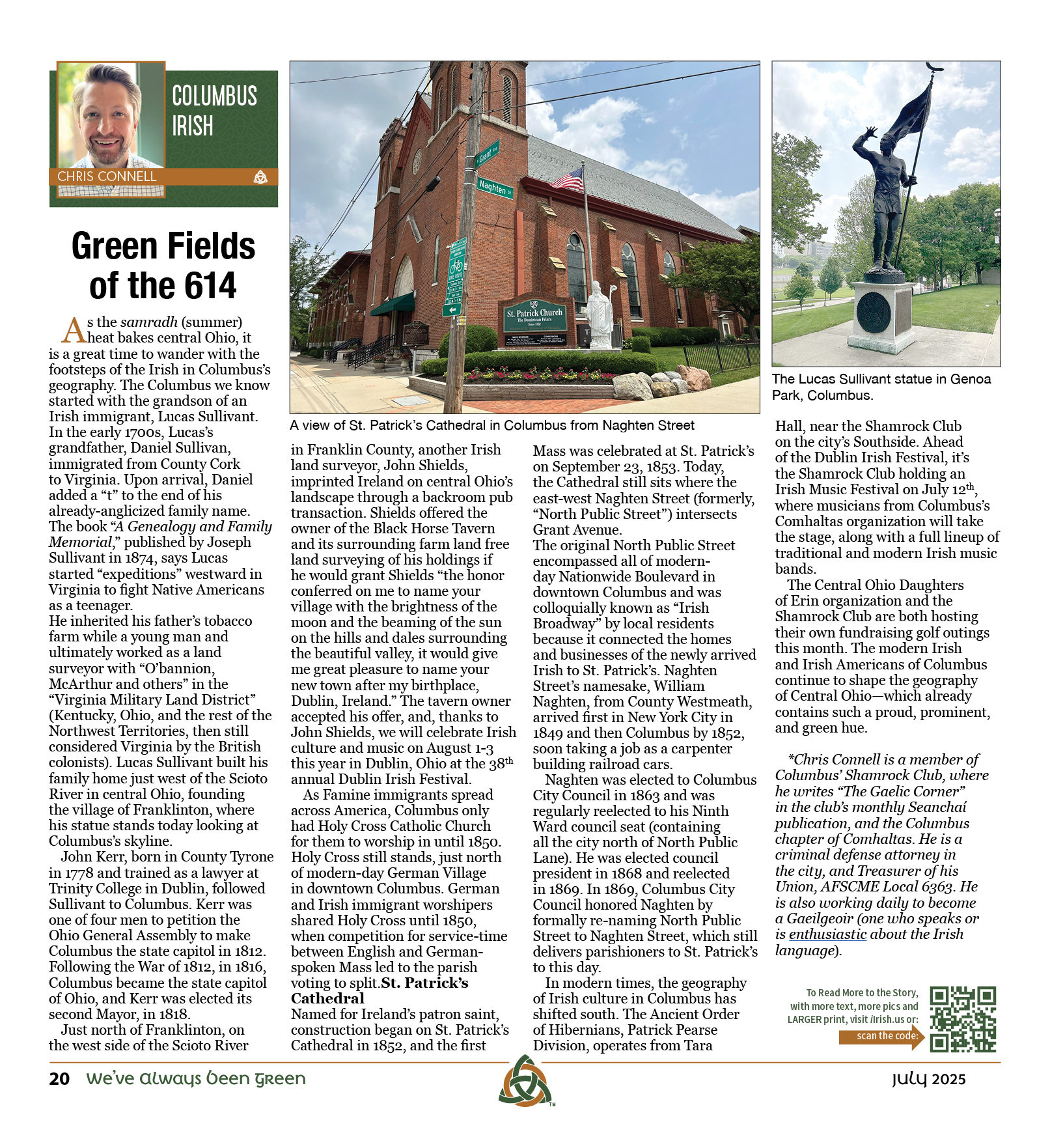 As the samradh (summer) heat bakes central Ohio, it is a great time to wander with the footsteps of the Irish in Columbus’s geography. The Columbus we know started with the grandson of an Irish immigrant, Lucas Sullivant.