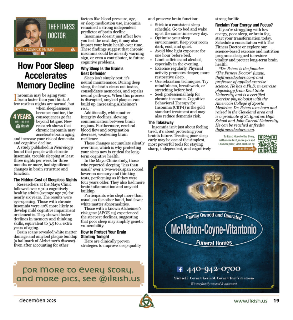 Insomnia may be aging your brain faster than you think. A few restless nights are normal, but when sleeplessness becomes routine, the consequences go far beyond fatigue. New research shows that chronic insomnia may accelerate brain aging and increase your risk of dementia and cognitive decline.