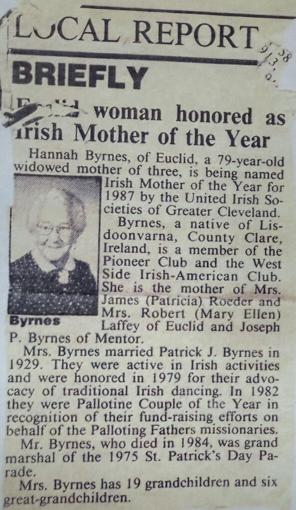 Many of Patrick and Hannah’s grandchildren and great-grandchildren have participated in the parade over the years and are active in a variety of Irish organizations and societies throughout Northeast Ohio. Their involvement reflects a broad and lasting family commitment to Irish heritage and community life.