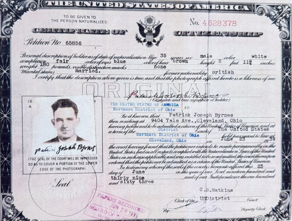 The honor recognized a lifetime of service to Cleveland’s Irish community. Patrick was a founder of the West Side Irish American Club in 1931 and was a member of the Gaelic Society and the Pioneer Total Abstinence Association. He also helped countless Irish immigrants navigate life in a new country.