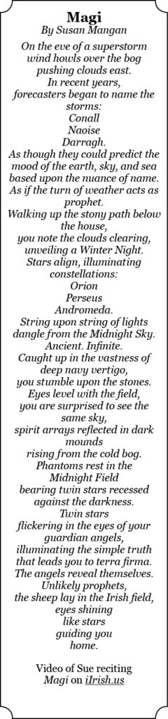 Again, I stood alone breathing in the pristine air of an Irish winter’s night. It was then that I saw the sheep in the field and a poem began to take shape.