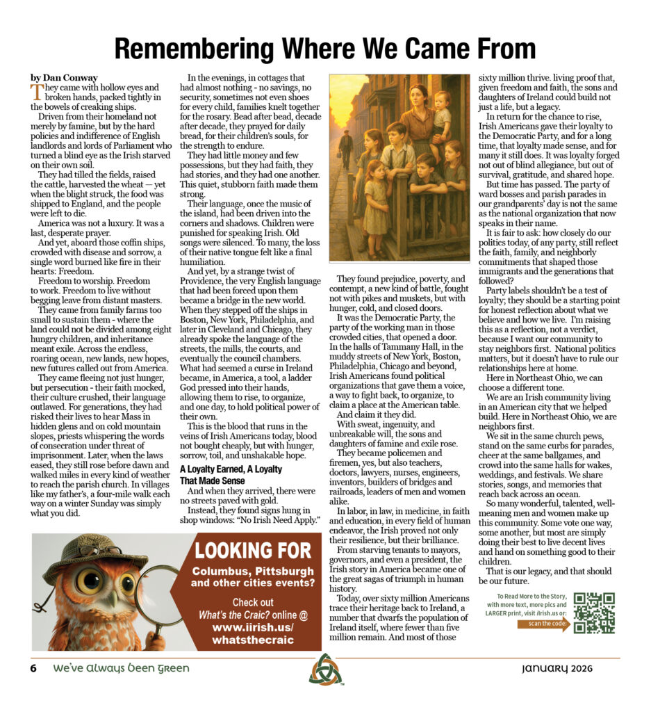 Here in Northeast Ohio, we can choose a different tone. We are an Irish community living in an American city that we helped build. Here in Northeast Ohio, we are neighbors first.