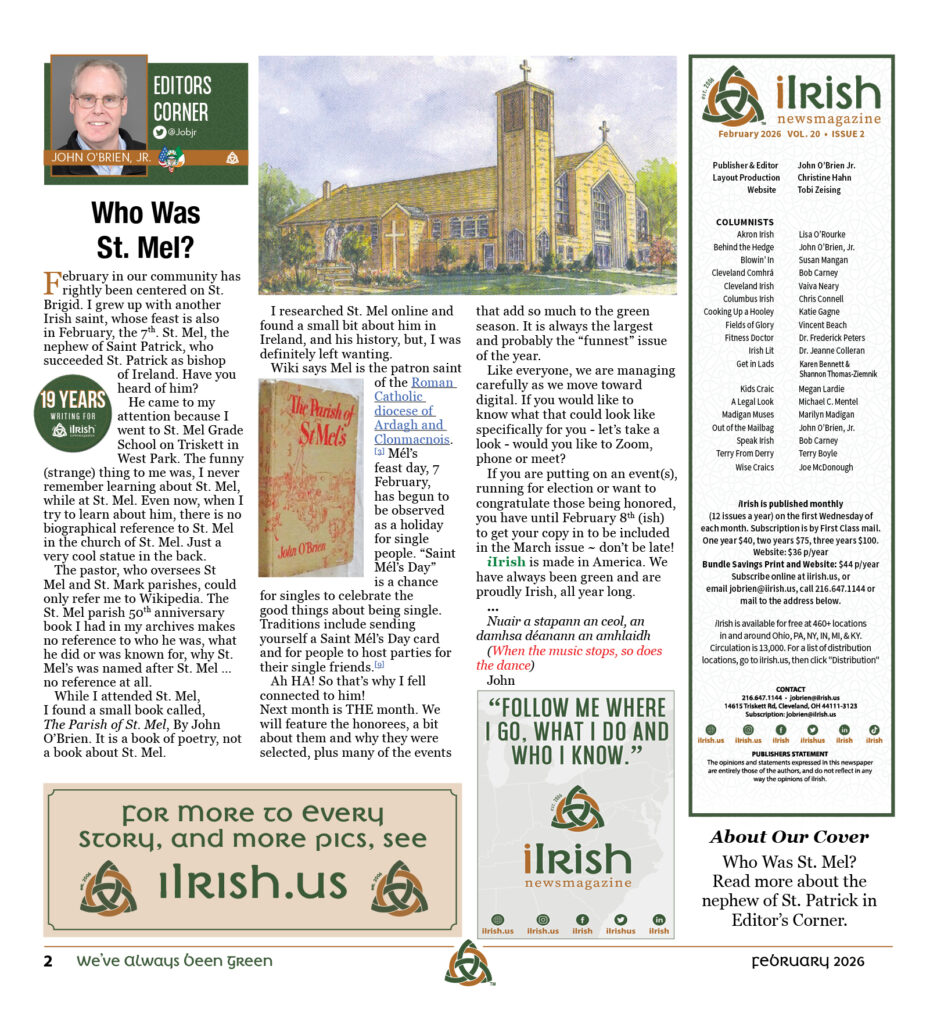 *John is a Founder and the Publisher and Editor of iIrish; a Founder and Deputy Director of Cleveland Irish Cultural Festival for more than 35 years; an archivist, spokesman, emcee, Spoken Word presenter and author of five books, so far.