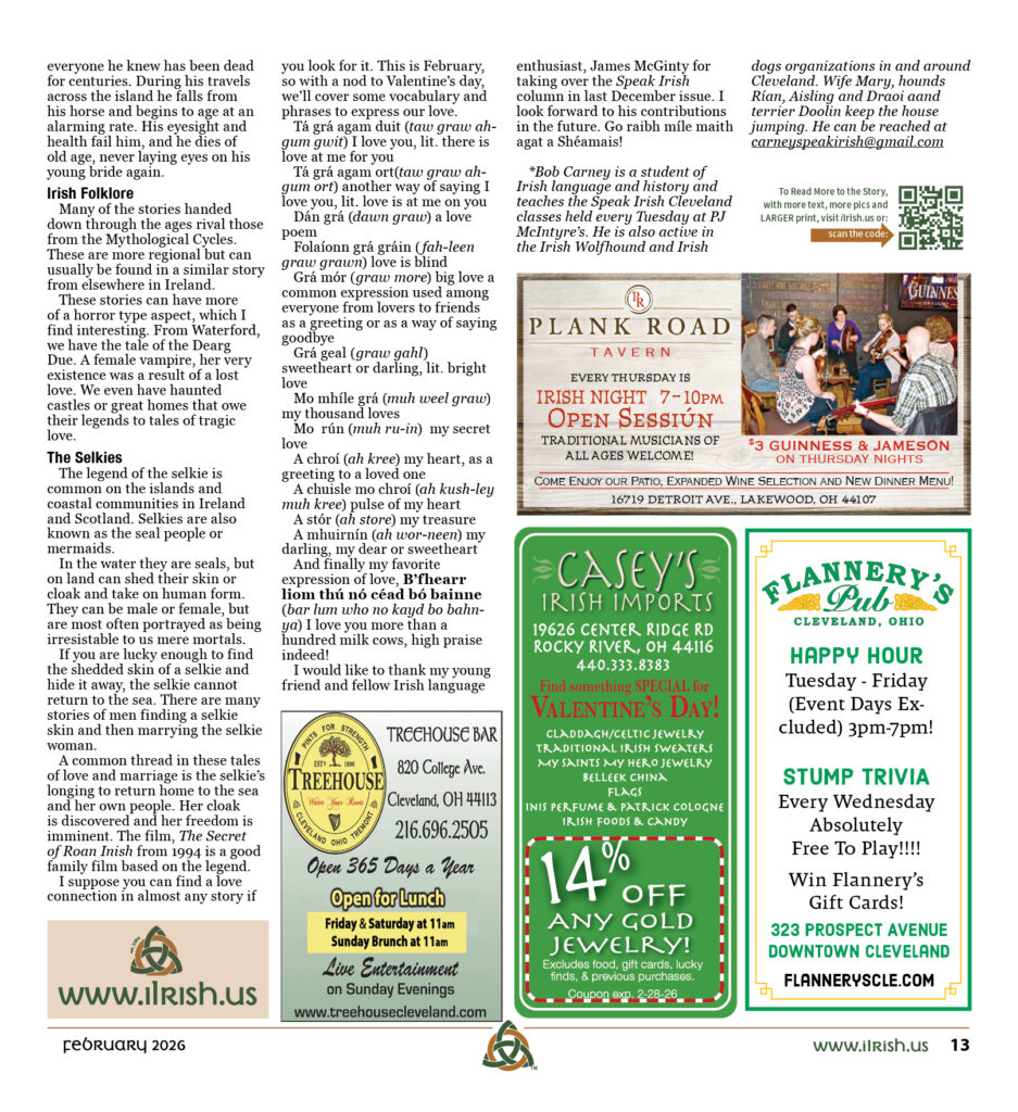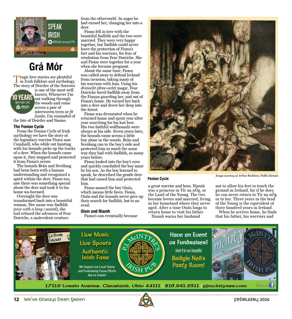 I would like to thank my young friend and fellow Irish language enthusiast, James McGinty for taking over the Speak Irish column in last December issue. I look forward to his contributions in the future. Go raibh míle maith agat a Shéamais!