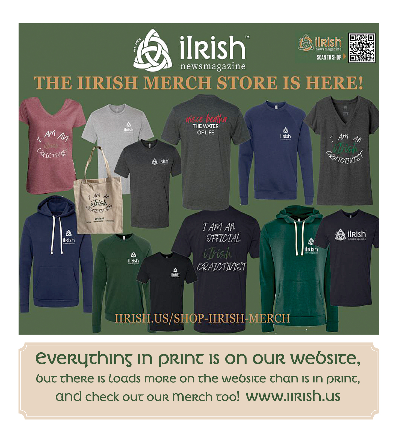 HomeArts/EntertainmentGot the Right Gear for St. Patrick's Season? Arts/Entertainment Got the Right Gear for St. Patrick’s Season? By John O'Brien, Jr. February 17, 2026 0 18 Share FacebookTwitterPinterestWhatsApp John O'Brien, Jr.https://www.iirish.us*John is a Founder and the Publisher and Editor of iIrish; a Founder and Deputy Director of Cleveland Irish Cultural Festival for more than 35 years; an archivist, spokesman, emcee, Spoken Word presenter and author of five books, so far. TagsbagsCraictivistgearHoodiesiIrish.ussweatshirtsWater of Life Share FacebookTwitterPinterestWhatsApp Previous article“We will not acquiesce in any legacy process that disregards victims’ rights.”Next articleCeltic Spirituality RELATED ARTICLES Arts/Entertainment Kid’s Craic March 10, 2026 Arts/Entertainment Irish Lit March 7, 2026 Arts/Entertainment Congratulations, to the 2026 St. Patrick’s Day Honorees March 5, 2026 LEAVE A REPLY Cancel reply Comment: Please enter your comment! Name:* Please enter your name here Email:* You have entered an incorrect email address! Please enter your email address here Website: Save my name, email, and website in this browser for the next time I comment. Most Popular Kid’s Craic March 10, 2026 British Justice? March 10, 2026 Irish Unity Education Webinar with Rev. Karen Sethuraman Available March 10, 2026 Cleveland Irish March 10, 2026 Load more Recent Comments Marge binder on Editor’s Corner: Have You Heard of St. Mel? Tom Binder on Rolling Through Ireland: The O’Brien Express Launches with a Memorable First Tour: Day 1 (con’t) Chris Connell on Cleveland Comhrá: The Evolution of the Irish Vampire Tom Binder on Rolling Through Ireland: The O’Brien Express Launches with a Memorable First Tour: Day IV Sheila Ives on Illuminations: Edward Joseph Dundon John O'Brien, Jr. on Rolling Through Ireland: The O’Brien Express Launches with a Memorable First Tour: Day 1 (con’t) John O'Brien, Jr. on Rolling Through Ireland: The O’Brien Express Launches with a Memorable First Tour: Day 1 (con’t) Siobhán on Rolling Through Ireland: The O’Brien Express Launches with a Memorable First Tour: Day 1 (con’t) Brian K McCutcheon on Rolling Through Ireland: The O’Brien Express Launches with a Memorable First Tour: Day 1 (con’t) Brian K McCutcheon on Rolling Through Ireland: The O’Brien Express Launches with a Memorable First Tour Sheila Ives on Judging a Book by its Cover: John Connell’s The Farmer’s Son John O'Brien, Jr. on Get in Lads, We’re Going on An Adventure: Timeless Tales and Poetry