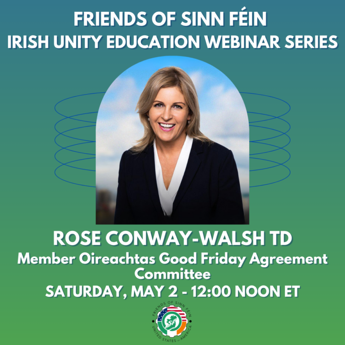 Join us for a conversation with Rose Conway-Walsh, Sinn Féin TD for Mayo and member of the Oireachtas Good Friday Agreement Committee.